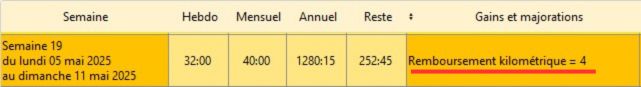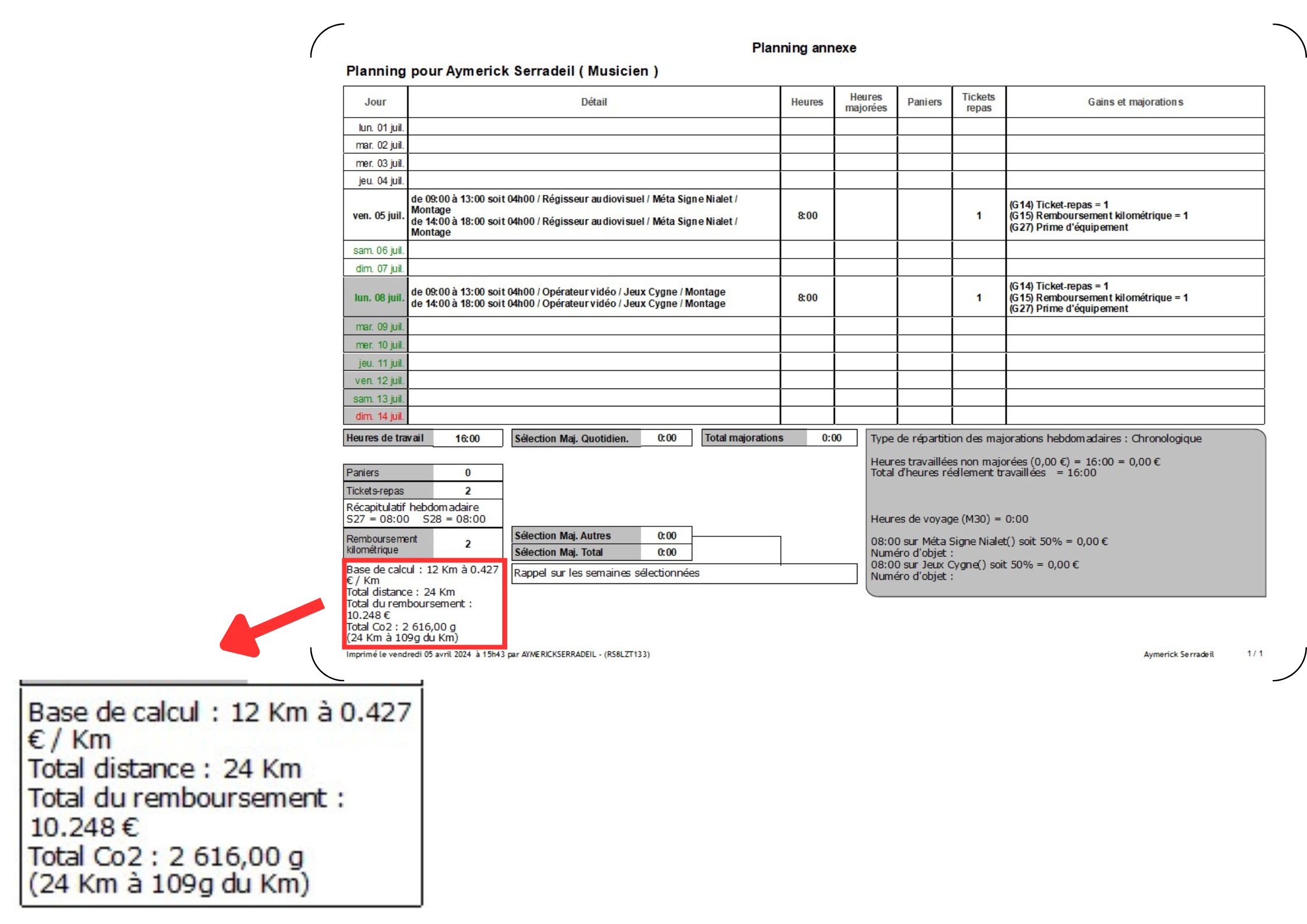 La présence de ligne de planning engendrera automatiquement un remboursement kilométrique.