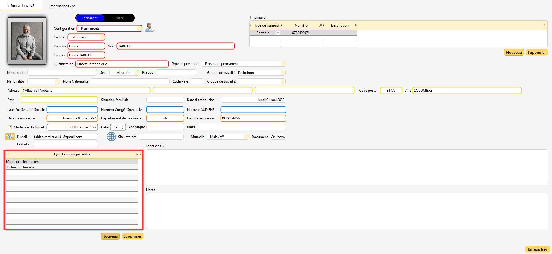 Une table permet d'inscrire toutes les qualifications que la personne peut occuper (voir cadre rouge sur la 1ere capture d'écran)