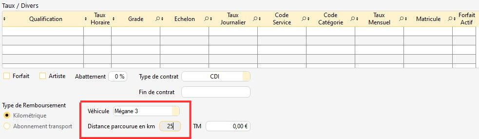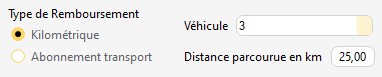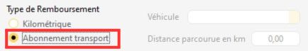 Info : Si la coche "Abonnement transport" est activée, le remboursement kilométrique n'est plus possible.