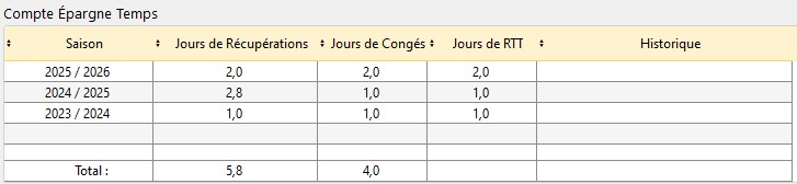 Vous pouvez saisir ici le compte épargne temps des saisons antérieures.