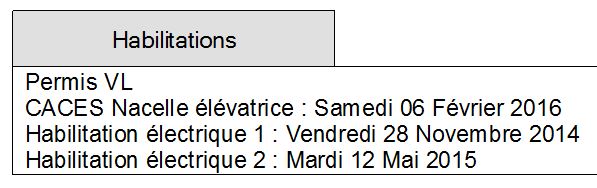 Les habilitations et leurs dates de validité ainsi que les qualifications s'impriment en bas de la Fiche de renseignement salarié.