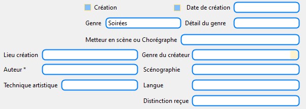 Le champ "Genre du créateur" permet de faire des statistiques depuis la Vue Globale sur les Spectacles et les Activités (Homme, Femme, Mixte).