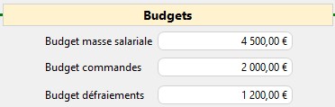 Par défaut, les champs ''Budget'' ci-dessus ne sont pas visibles. Pour qu'un utilisateur puisse les voir, il faut lui affecter le droit