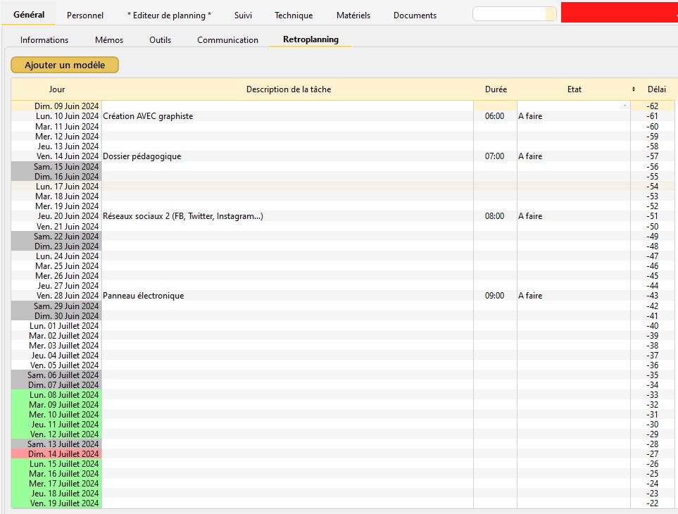 Info : les tâches générées par défaut se personnalisent (voir le chapitre Option - Rétroplanning).