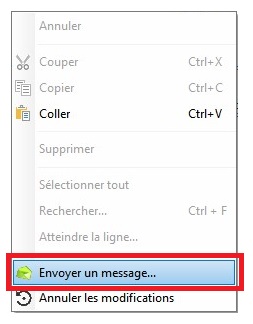 Il est possible de signaler des modifications apportées en envoyant un message depuis le sous-onglet "Mémos" dans l'onglet "Général". Il suffit de faire un clic droit dans le champ concerné.