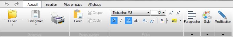 4 onglets permettent de gérer le traitement de texte :