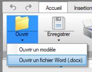 On peut également reprendre des modèles de type Word (.docx) avec le bouton ''Ouvrir'' :