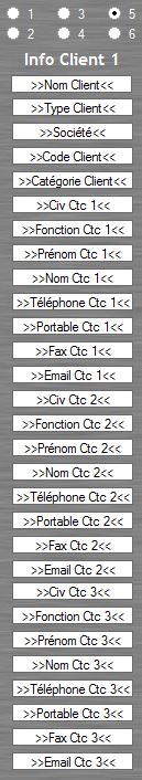 Bouton 5 : INFO CLIENT 1 : les champs liés au client (Contacts, ...)