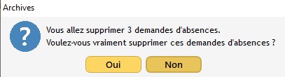 Une fenêtre vous informe du nombre de demandes qui vont être supprimées, et vous demande de confirmer leurs suppressions.