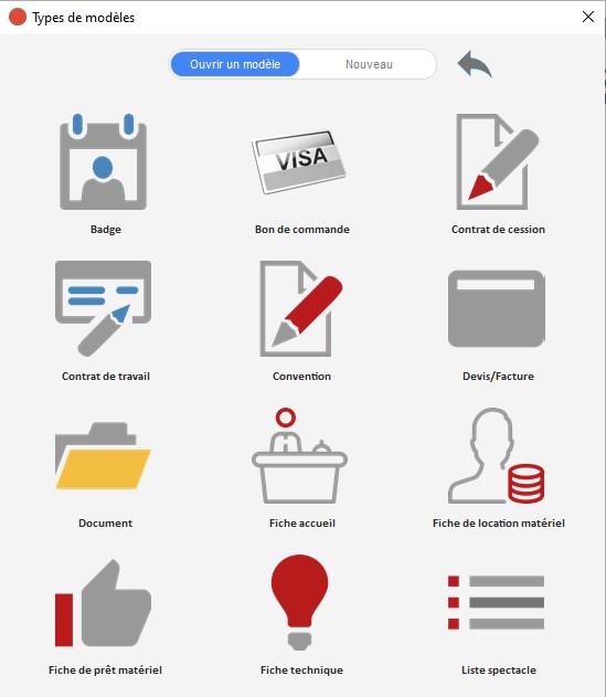 1/ Sélectionnez le cartouche "Ouvrir un modèle" en haut de la fenêtre.