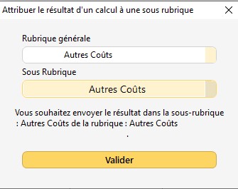 L'encart Budget affiche la rubrique et la sous-rubrique dans lequel le montant du BdC a été intégré.