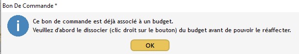 Attention : Si le montant du Bon de commande est modifié ou qu'il ne doit plus être lié au BdC, il faut également le dissocier.