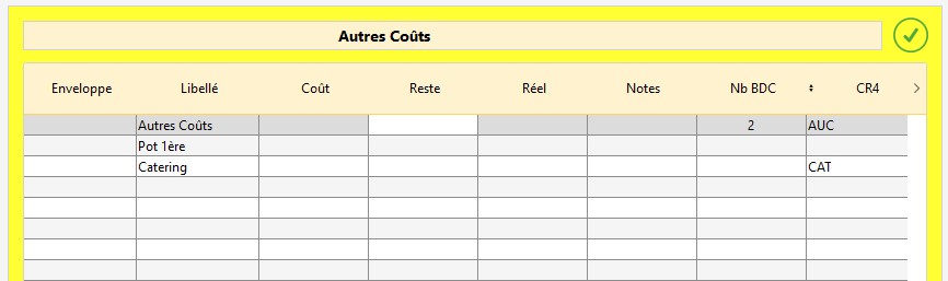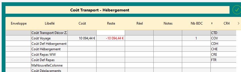 Un double-clic sur la ligne d'un BdC l'ouvre en arrière-plan du budget.