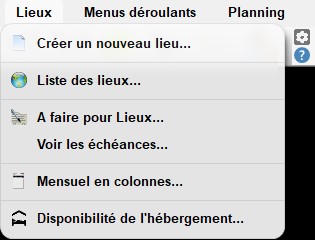 L'onglet "Lieux" permet les actions suivantes :