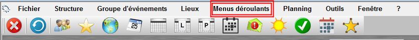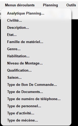 Seuls les utilisateurs ayant le droit pourront accéder aux Menus Déroulants pour créer, modifier ou supprimer une information contenue dans les Menus Déroulants.