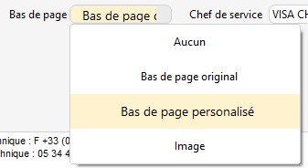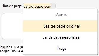 Si vous sélectionnez dans le volet déroulant "Bas de page"
