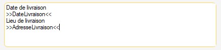 Dans l'éditeur de modèles de Bons de commande (tiroir ''Divers''), le champ