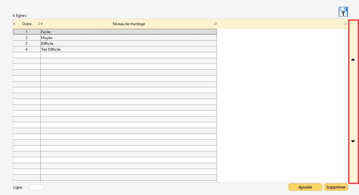 1/ Cliquez sur les flèches jaunes verticales pour changer l'ordre d'apparition des éléments.