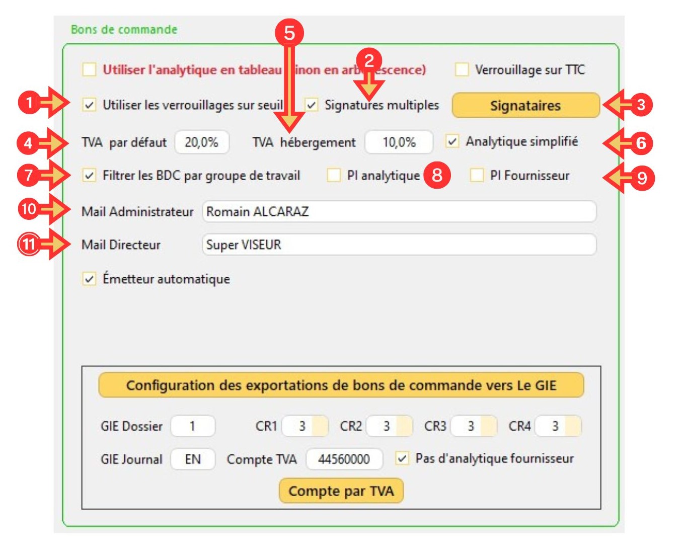 - 7/ si vous cochez cette case, chaque groupe de travail ne visualise que ses BDC.