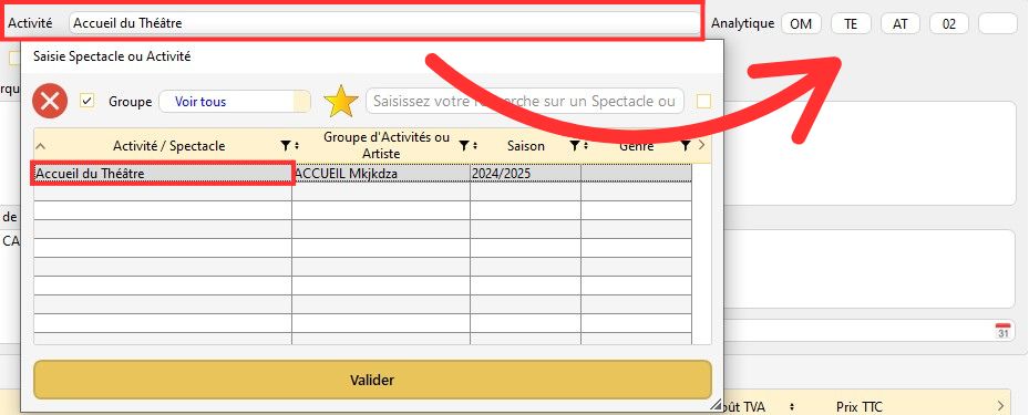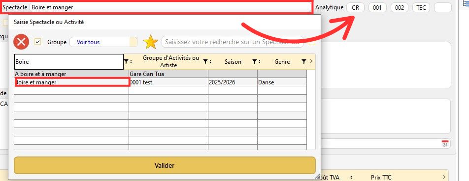 Dès lors, quand un utilisateur - ayant opté pour l'analytique simplifiée - choisira ce spectacle dans l'éditeur de bons de commande, les critères s’intégreront directement.