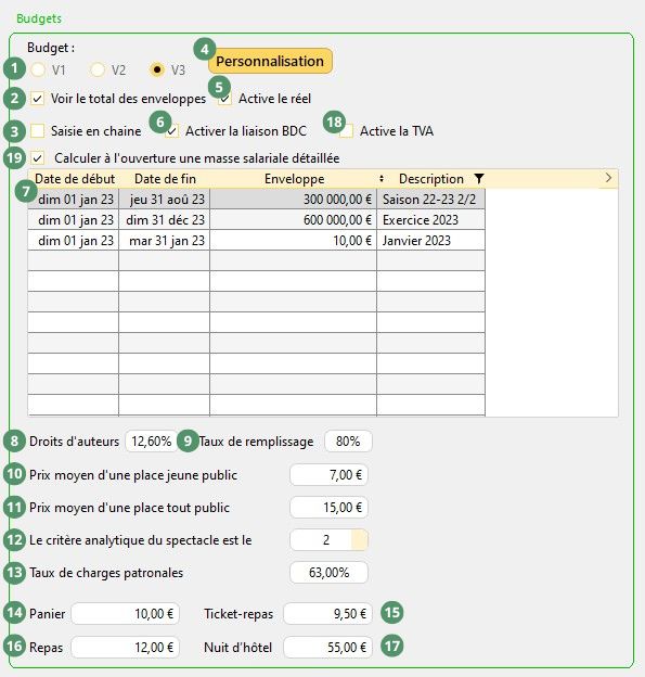 1 : active l'utilisation de la version 1 (première version du budget), 2 (deuxième version du budget) ou 3 (dernière version) du budget.