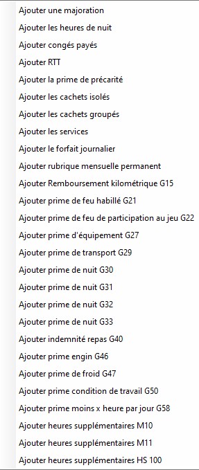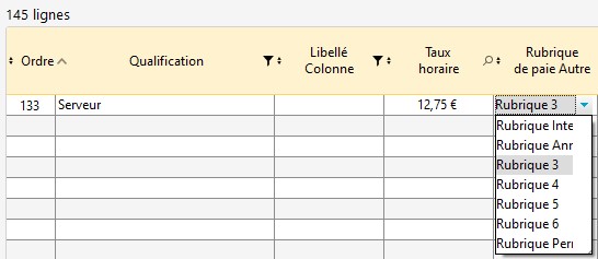Ces rubriques de paie seront ensuite renseignées pour les qualifications souhaitées dans "Menus déroulants / Qualification...".