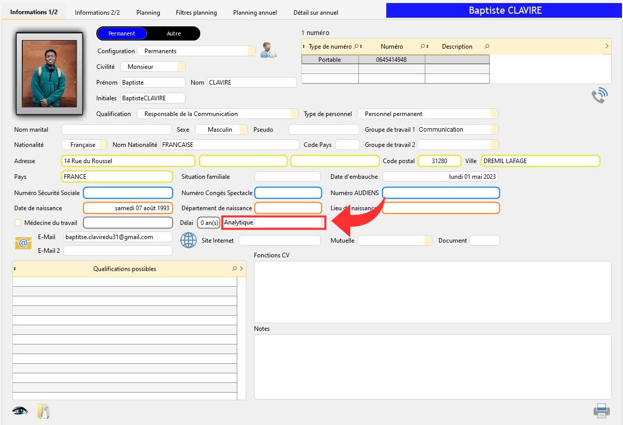 Il peut aussi être saisi automatiquement, si vous avez importé la liste du personnel depuis sPAIEctacle.