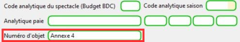 1/ saisir "Annexe 4" dans le champ "Numéro d'objet" du spectacle ou de l'activité.