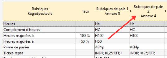Dans la configuration des options d'export des paies vers sPAIEctacle, il y a 4 rubriques de paie pour gérer l'export des données de paies de personnel autre qu'intermittents (Annexes 8 et 4), par exemple pour le personnel de bar, ...