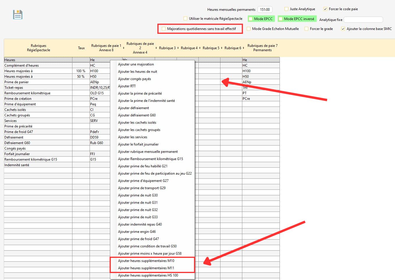 Pour les intégrer à l'export vers sPAIEctacle, il faut cocher