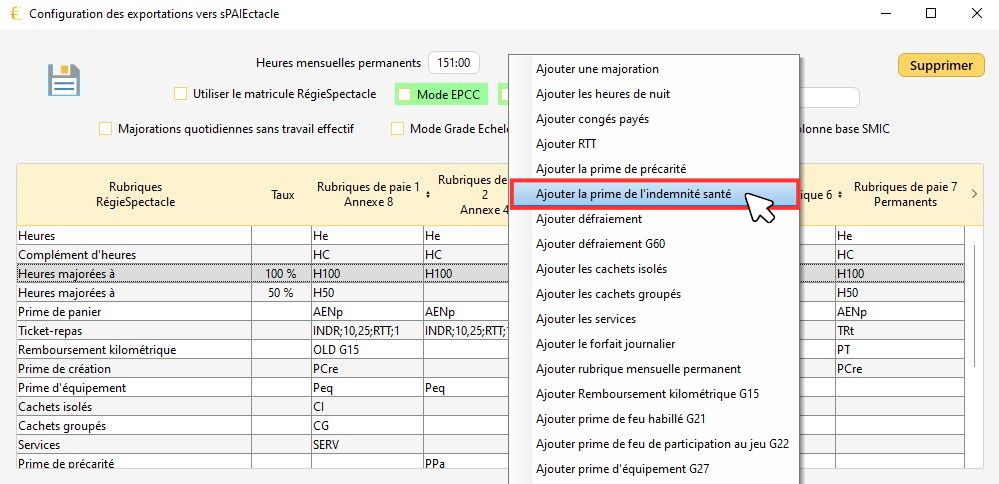 Exporter vers sPAIEctacle en forçant le code paie