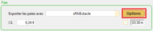 2/ Ouvrez la configuration des exports vers sPAIEctacle en cliquant sur "Options".