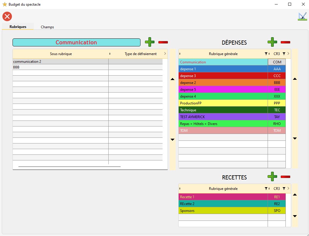La version 3, ou nouvelle version d'utilisation du budget du spectacle a strictement le même fonctionnement que la version 2 (version récente) du budget du spectacle. A ceci près que l'utilisateur n'est plus limité sur le nombre de rubriques et sous-rubriques qu'il créé : il peut en créer autant qu'il le souhaite.
