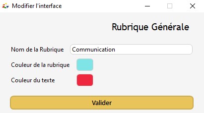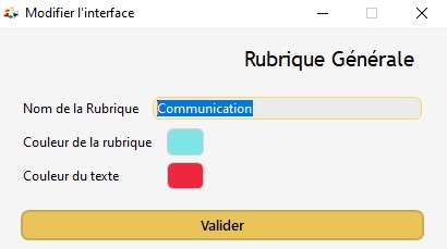 3/ Cliquez sur le rectangle à côté du libellé "Couleur de la rubrique" pour changer la couleur de fond de la rubrique OU cliquez sur le rectangle à côté de "Couleur du texte" pour changer la couleur du texte.