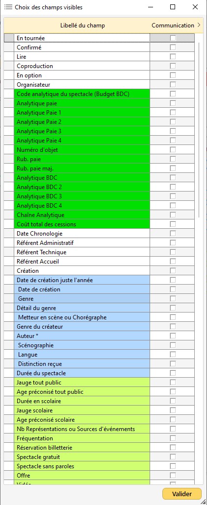 4/ Cochez les champs dont vous avez besoin puis validez.