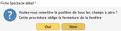 Pour réinitialiser les onglets et les champs par défaut de la Fiche Spectacle :