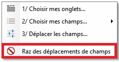 2/ Cliquez sur "Raz des déplacements de champs".