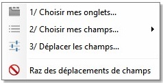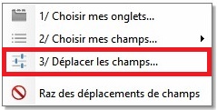 Important : les champs déplacés et doublés dans les onglets sont solidaires entre eux lors de leurs déplacements : déplacer l'un fait déplacer l'autre simultanément (d'où l'utilité de conserver un onglet unique pour éviter les conflits, voir Étape 1).