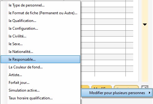 3/ Faites un clic droit sur "Modifier" pour choisir "Modifier pour plusieurs personnes -> le Responsable".