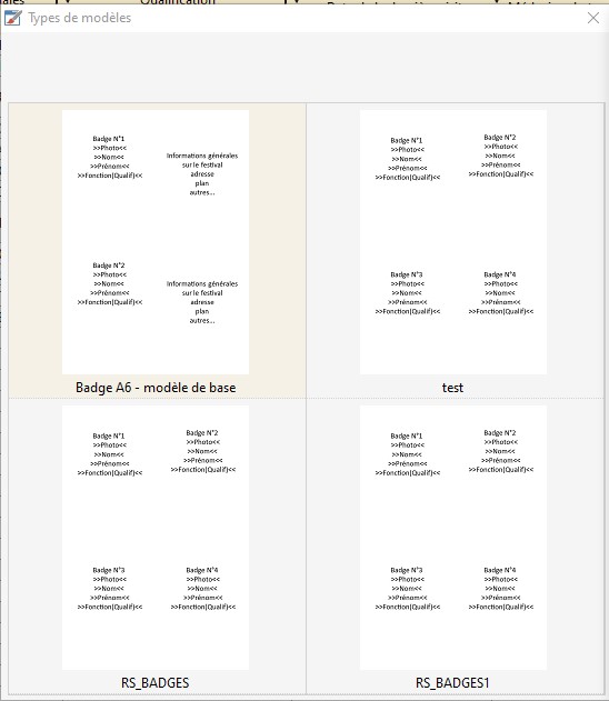 Info : pour modifier un modèle de badge, voir le chapitre "Éditeur de modèle de badge".