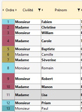 Info : Ces couleurs sont appliquées dans la colonne "Ordre".