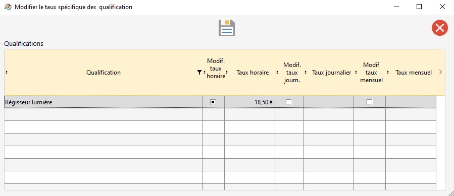Modification des Taux (horaire / journalier / mensuel) par qualifications pour plusieurs personnes