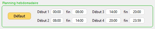 Attention, l'heure de début d'une tranche doit être identique à l'heure de fin de la tranche précédente. Vous pouvez ne pas respecter cette règle, mais certaines lignes de planning risquent de ne pas s'afficher.