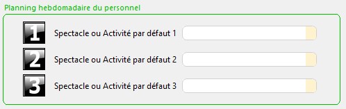 Les spectacles ou les activités par défaut peuvent se personnaliser depuis cet encart :