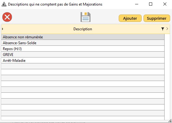 En plus des 2 descriptions qui ne comptent pas de temps de travail effectif (ni de gain et majoration), une liste permet d'en ajouter d'autres.