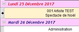 Ces descriptions sont visibles dans l'éditeur de planning comme "Spectacle" et "Show".