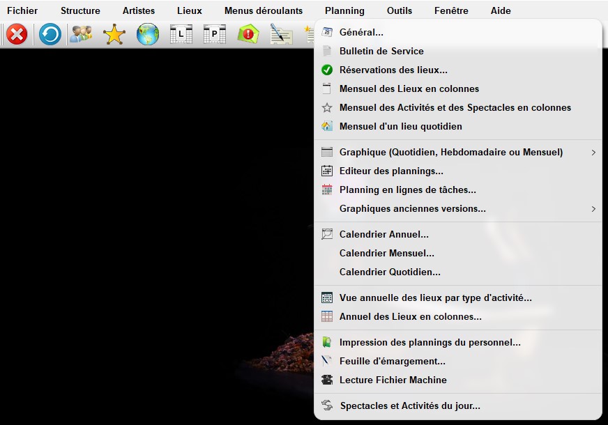 L'onglet "Planning" permet les actions suivantes :