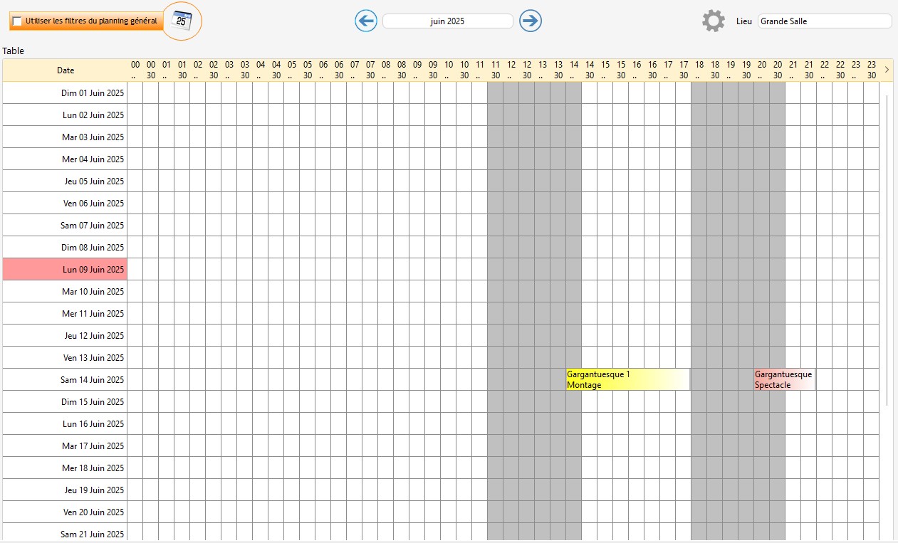 Info : Vous pouvez appliquer les filtres du Planning Général avec