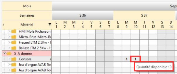 1/ Survolez avec le curseur de votre souris la quantité réservée : une bulle d'aide indique la quantité disponible de ce matériel ce jour là.