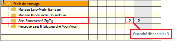 - la quantité totale est de 5 (Je possède dans ma structure cinq scies, tout lieu confondu)